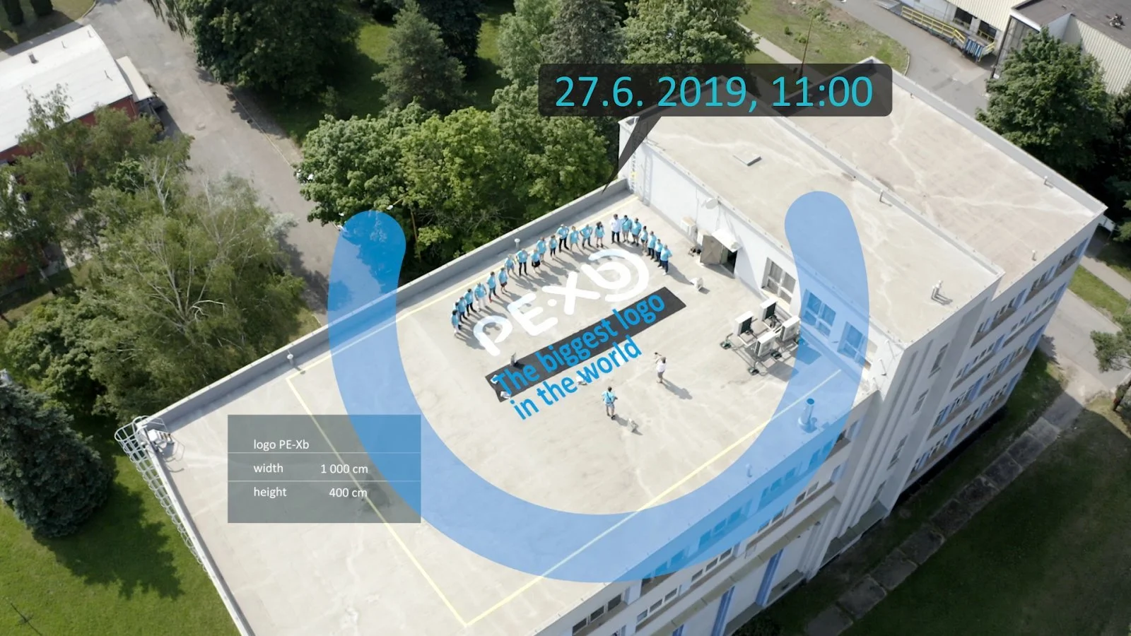 23 zaměstnanců vysypalo logo PE-Xb z více než 3 milionů 750 tisíc kompaudů. Nechyběla ani unikátní dronová, časosběrná dokumentace IDVIDEO.